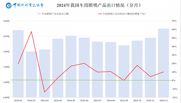 車用照明產品受到全球市場的廣泛歡迎,出口額約45億美元,同比增長11%;占我國照明行業出口總額8%,對比2023年上升1個百分點。